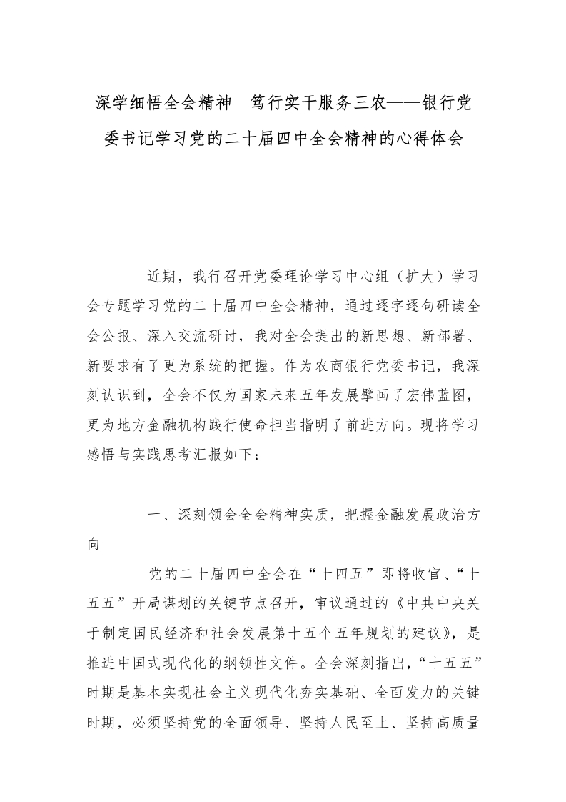深学细悟***精神 笃行实干服务三农——银行党委书记学习党的二十届四中***精神的心得体会_副本