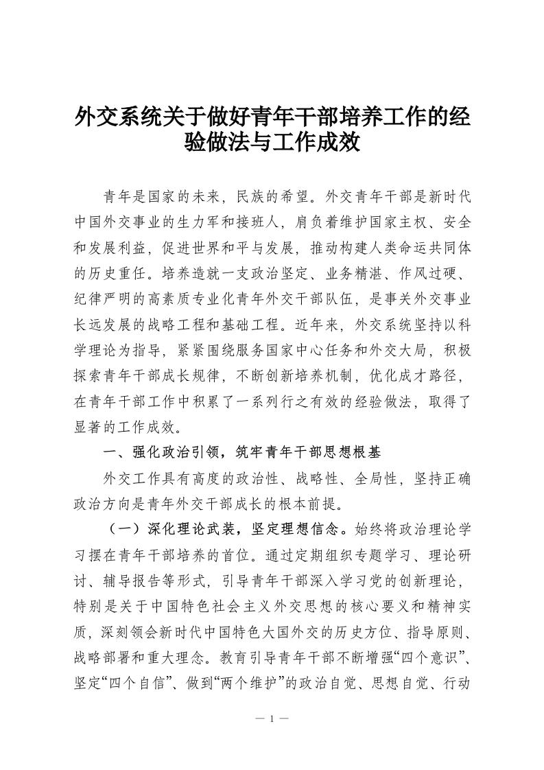 首页工作文档外交系统关于做好青年干部培养工作的经验做法与工作成效