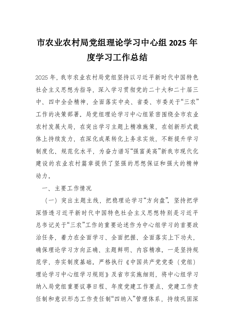 市农业农村局党组理论学习中心组2025年度学习工作总结