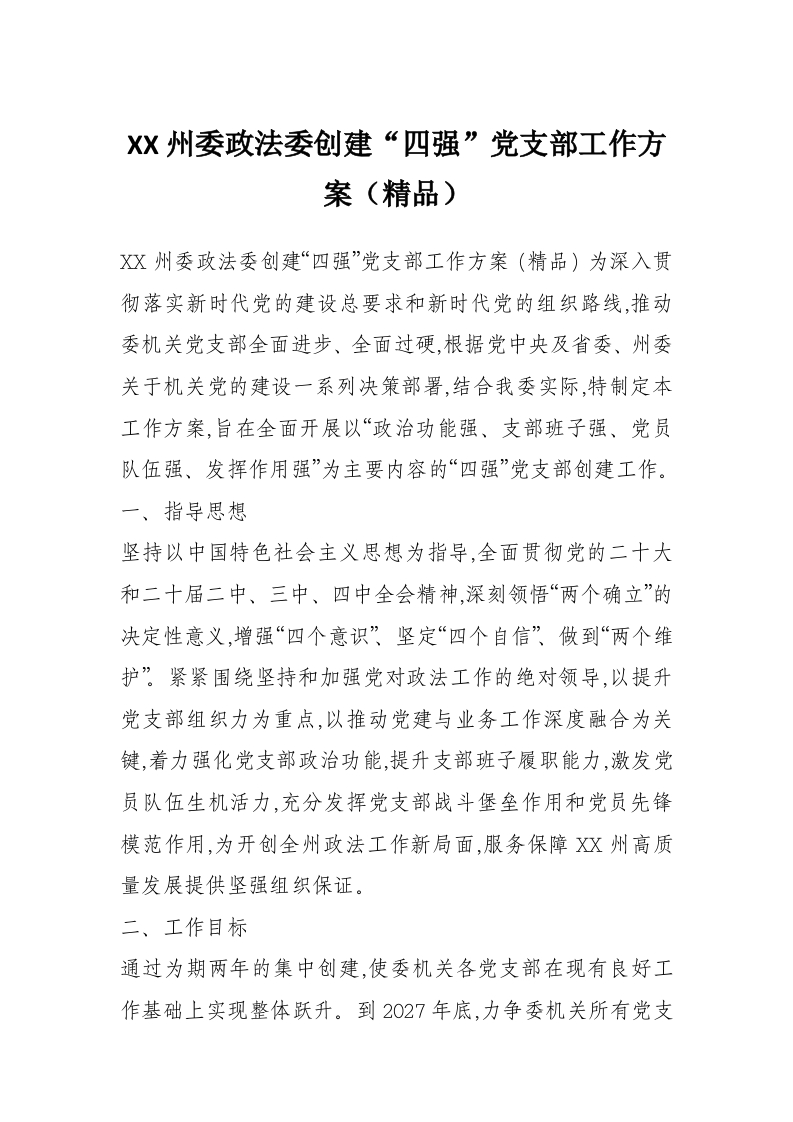 XX州委政法委创建“四强”党支部工作方案(精品)