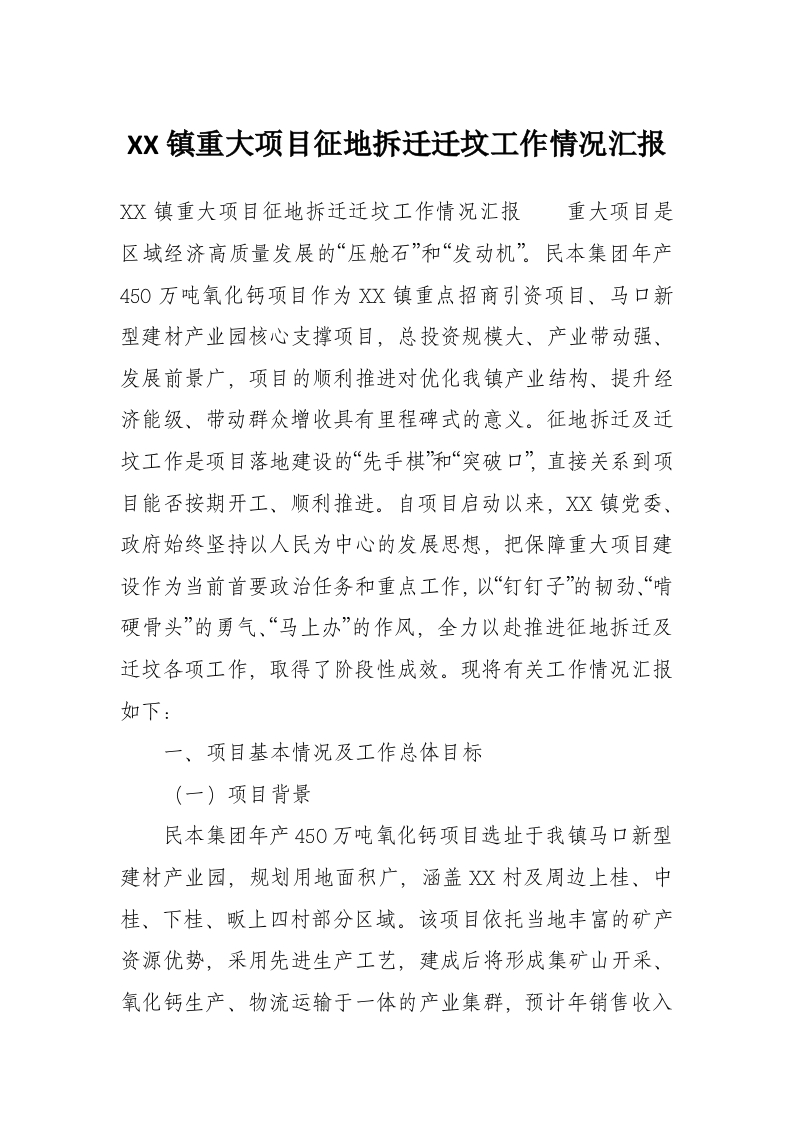 首页材料汇编XX镇重大项目征地拆迁迁坟工作情况汇报