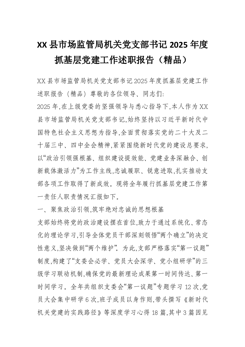 XX县市场监管局机关党支部书记2025年度抓基层党建工作述职报告(精品)