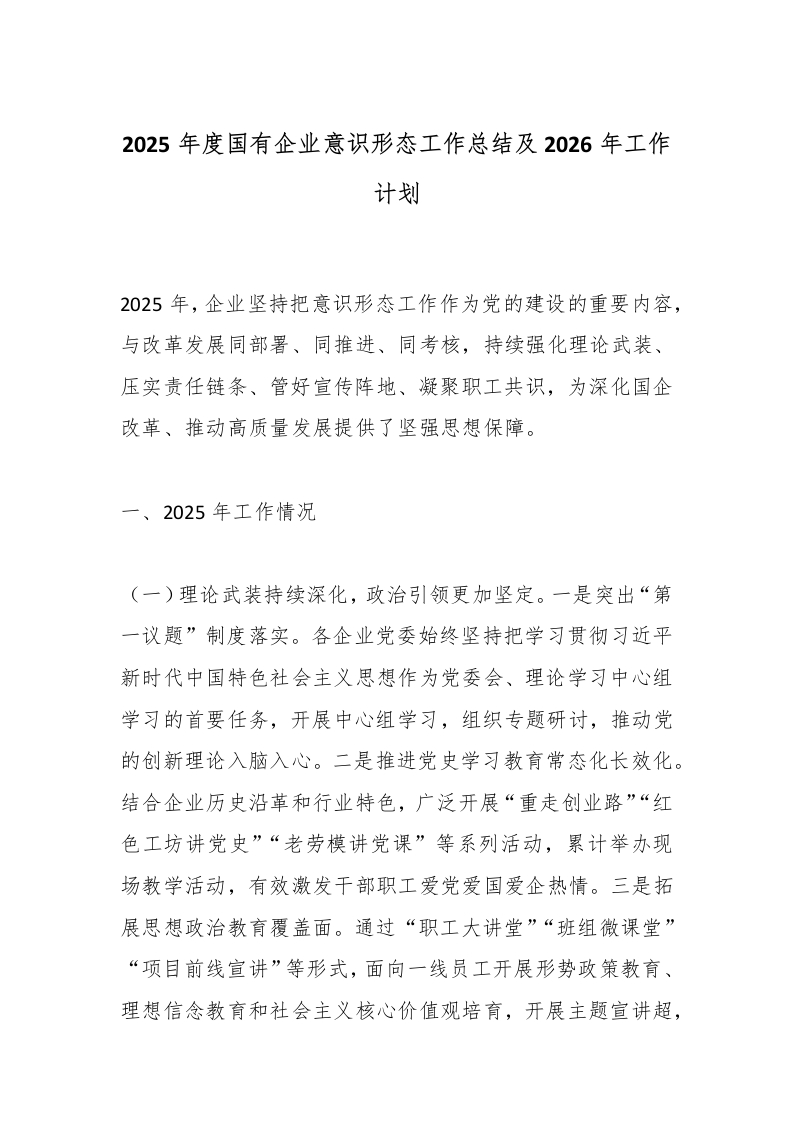 2025年度国有企业意识形态工作总结及2026年工作计划_副本