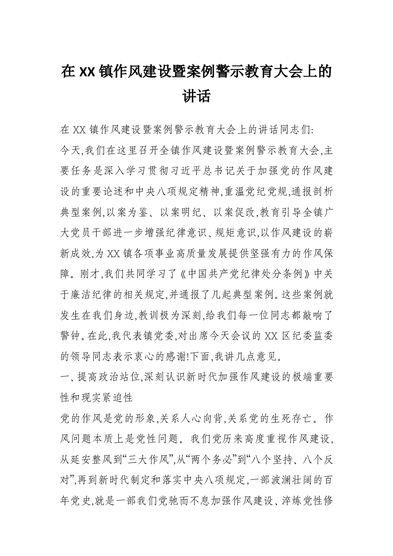 首页学习提升在XX镇作风建设暨案例警示教育大会上的讲话