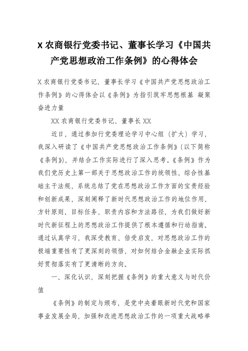 X农商银行党委书记、董事长学习《中国***思想政治工作条例》的心得体会